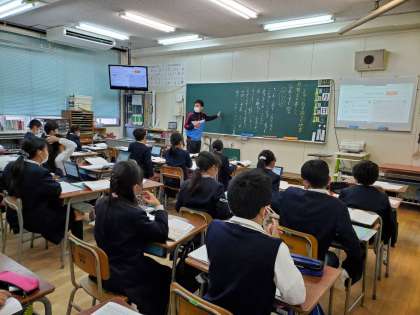 国語の学習で単元のまとめとして感想文を書く学習です。新見南吉さんの『ごんぎつね』を読む中で大切なキーワード取り上げて感想文を書くヒントを話し合っています。体育のではベースボール型ゲームをしています。ボールを打つ時にはバットかラケットを選び、運動しやすい用具を考えて活動しています。