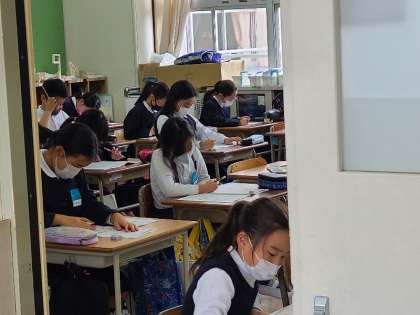 昨日に続き、学力経年調査が実施されました。今日は2時間目算数、3時間目理科、4時間目英語(5・6年)です。