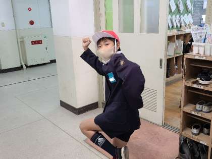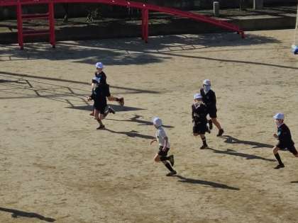 「今から運動場に行きます。」とポーズ。みんな元気に遊んでいます。