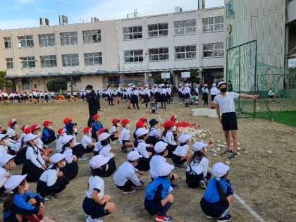 本日体育朝会を行いました。運動委員が最初に各運動の説明を行います。