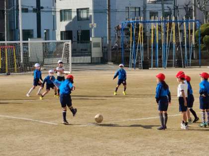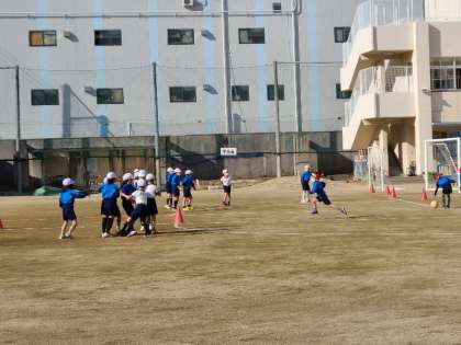 2年2組の体育の様子です。協力して楽しくボールゲームをしています。