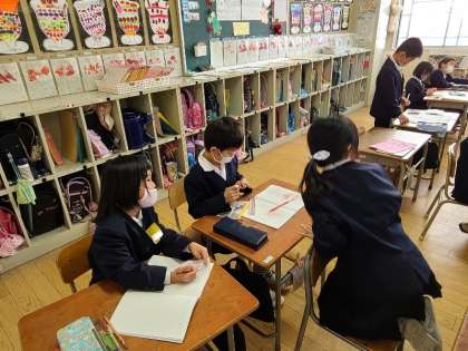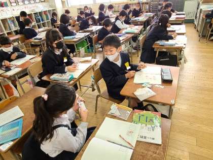 2年1組の算数の様子です。九九でビンゴゲームをしています。