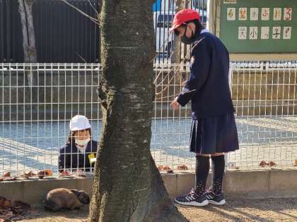 運動場の様子です。マロンも小屋から出て楽しそうです。