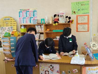 天小っ子は本が大好きです。借りた本を廊下で読んでいます。