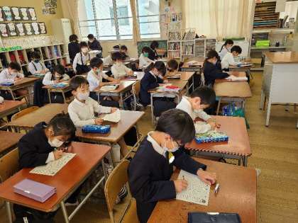 1年3組の体育、2年2組の国語、4年1組の算数の様子です。