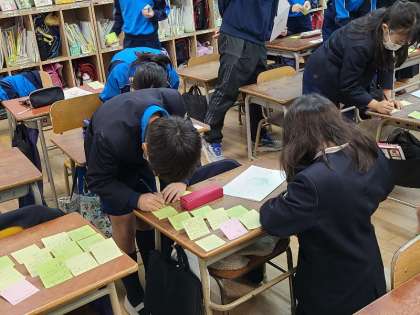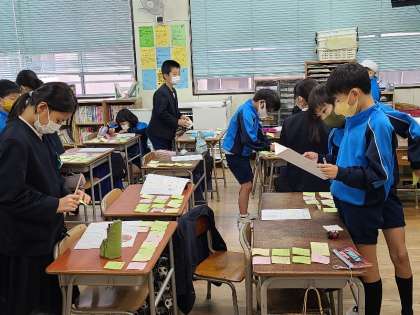 4年1組の国語の様子です。こどもたちが調べた「ふるさとの食」について感想や意見を書いています。