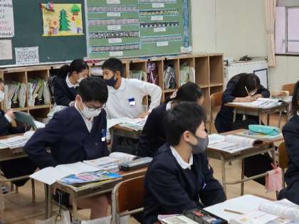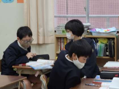 5年2組の社会の様子です。授業の中で互いに意見を交換しあう場面が何度も見られます。