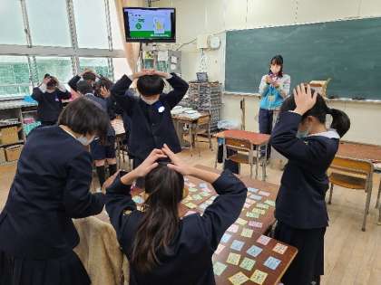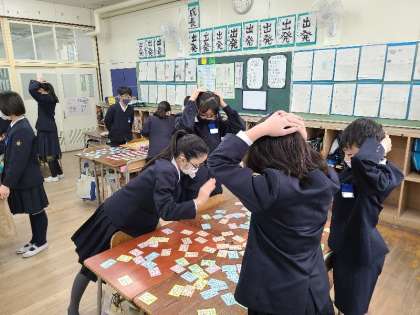 5年1組の国語の様子です。百人一首に取り組んでいます。