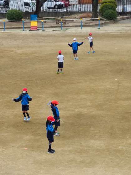 1年3組の体育の様子です。いろいろな跳び方で縄跳びができるようになりました。