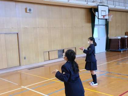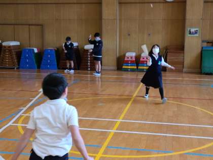 4年2組のお正月伝承遊びの様子です。上手に竹トンボを飛ばしていました。