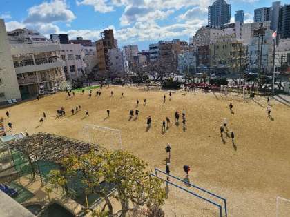 運動場は太陽がいっぱいです。子どもたちも元気いっぱいです。