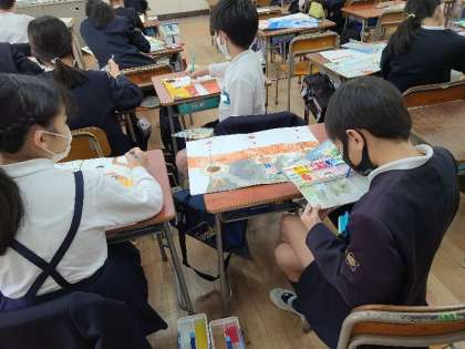 4年1組と1年3組の図工の様子です。