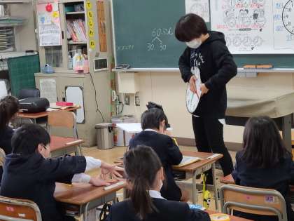 1年1組の算数の様子です。時計の読み方の学習です。Teamsで参加して答えていました。