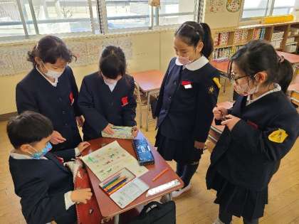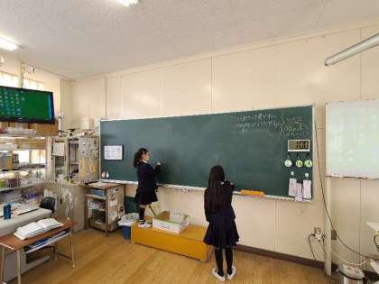 教室では、授業の続きや係活動、お友だちと絵をかいたりしてすごしています。