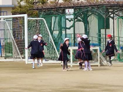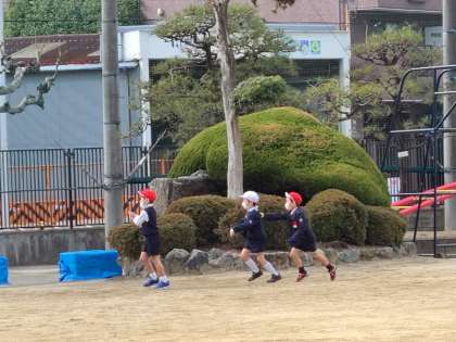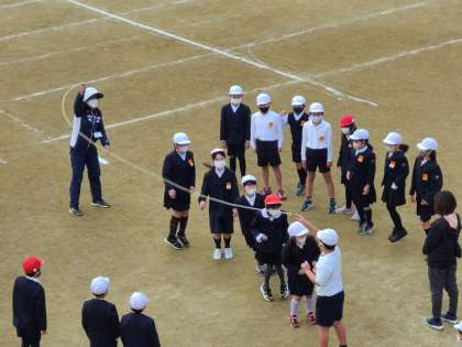元気に遊んでいます。みんな遊びで大縄跳びに挑戦していました。