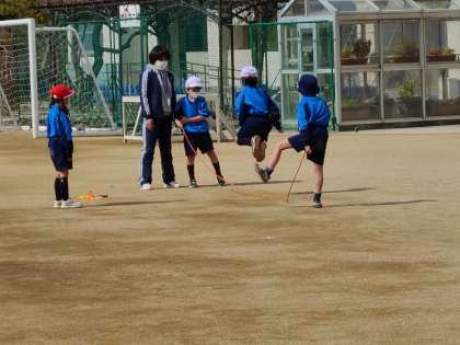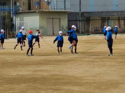 1年1組の体育の様子です。大縄跳びに挑戦していました。