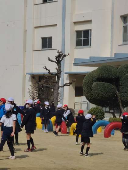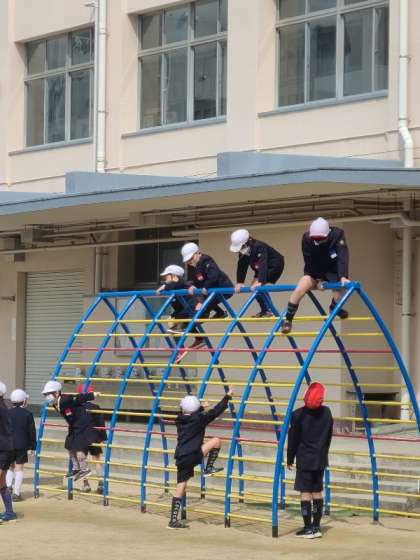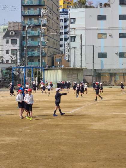 運動場の様子です。今日は暖かくて、気持ちよく遊んでいます。