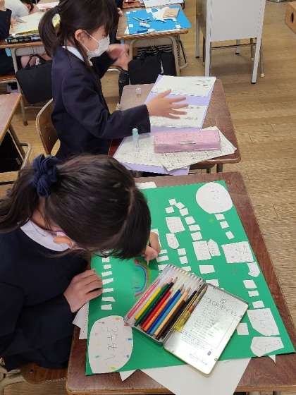 2年2組の図工の様子です。双六を作っています。