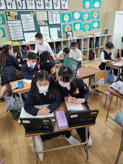 3年1組の様子です。お楽しみ会のゲームを考えています。