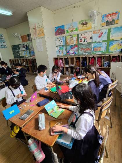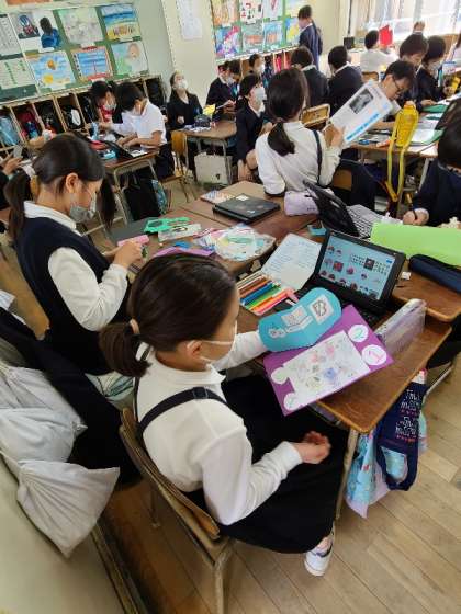 4年2組の様子です。10年後の自分に送るカードを作っています。