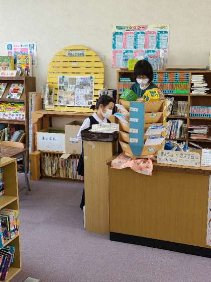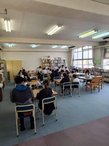 2年2組の図書館学習の様子です。図書館司書の羽山先生にも、いろいろ教えてもらいました。