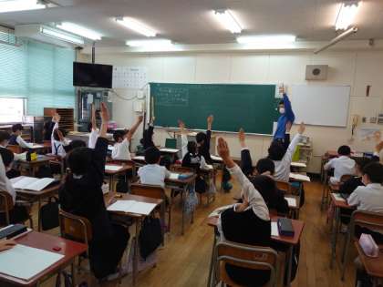 3年生は、外国語の学習です。C-NETの先生といろんな国の名前を学習しました。