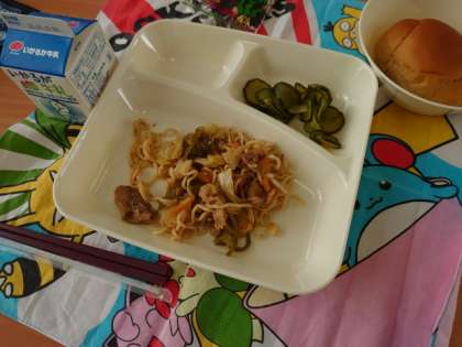 今日のメニューは、焼きそばです。
