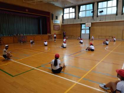 6年生「体育科」バスケットボールを使って、いろんな動きをしました。