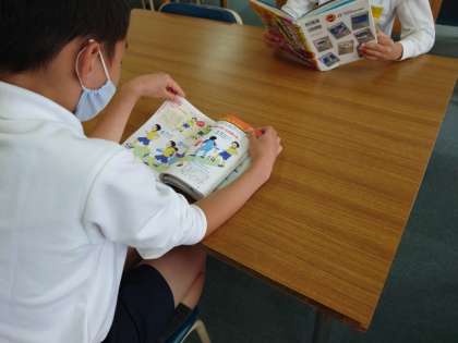 ちょうど雨で運動場が使えないので、たくさんの人が本を読みにきました。