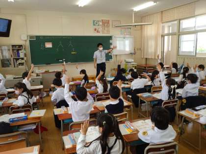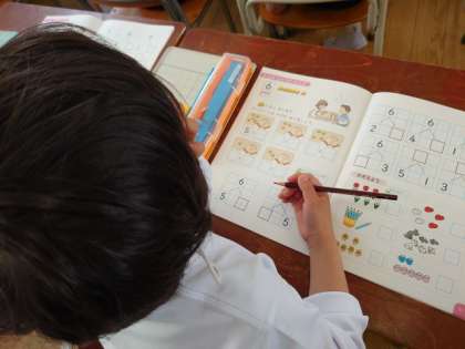 1年生【算数】6は5といくつ?5より大きい数を5といくつに分けることで数の理解を深めます。次のたし算にもつながる大事な学習です。