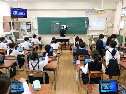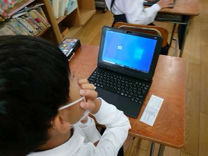 2年生【生活科】春見つけをするために、タブレット端末のカメラ機能を使いました。いい写真が撮れるといいですね。