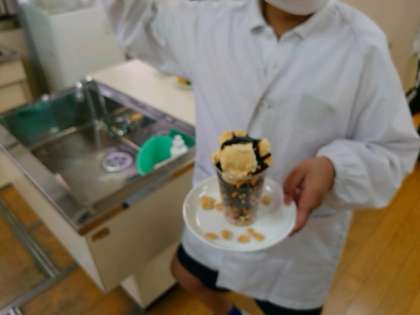 科学工作クラブはスライム作り、料理・クラフトクラブはパフェを作りました。