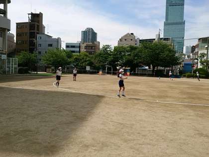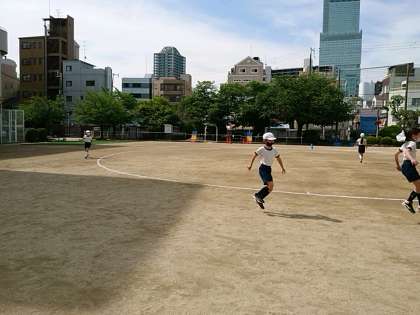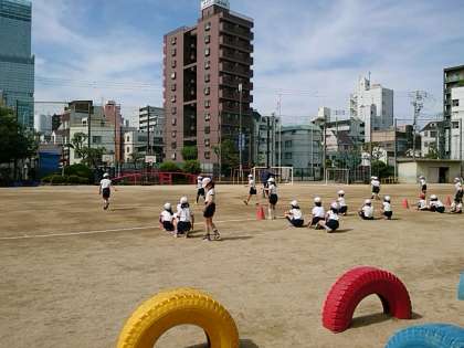 3年生【体育】「走の運動」早歩きやスキップなどのいろんな走り方やリングバトンを使ったリレーなどをしました。