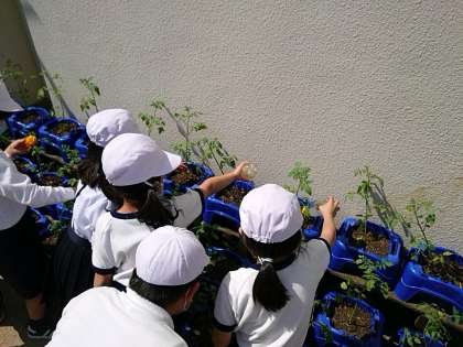 これから毎日お水をあげて、いっぱい実のなるミニトマトの木になるといいですね。