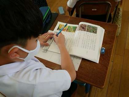 「自然のかくし絵」という説明文を、手掛かりになる言葉や文を見つけてまとめていきます。