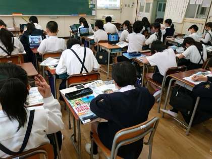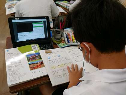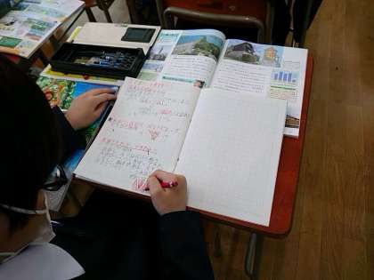 資料集やデジタル教材など、自分で必要と思う資料を選んでまとめる様子はさすが高学年です。