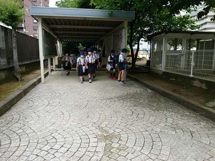 昨日の激しい雨もなんのその、天王寺小学校の運動場は、とても水はけが良いので、水たまりがありません。