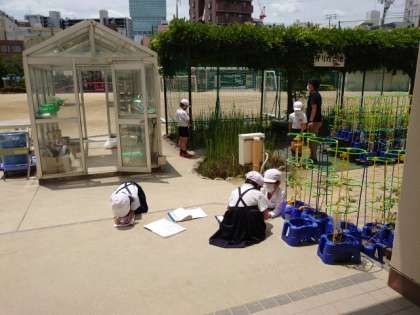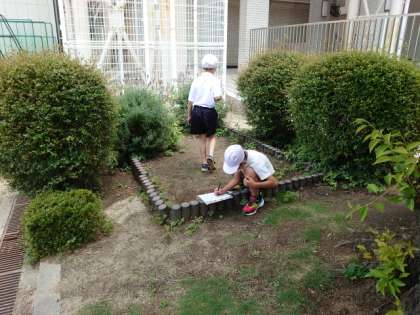 レポート作りの学習のために、学校の花や生き物の様子など、自分が調べようと思ったことを詳しく観察しています。