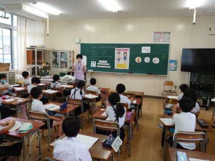 2年生の全クラスで、保健室の先生といっしょに「大切な自分の体」の学習をしました。