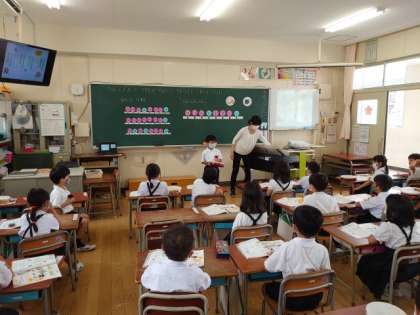 これまでの「たん」「たん」に加えて「たた」「たた」のリズムが加わりましたが、みんな上手にカスタネットやタンブリンを打っていました。