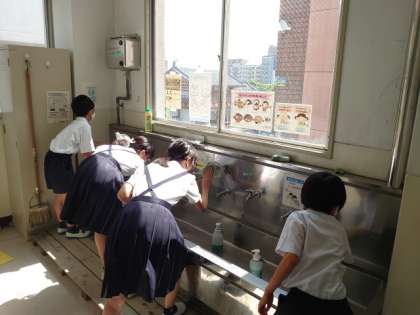今日は調べた方法を使って、実際に清掃活動をしました。