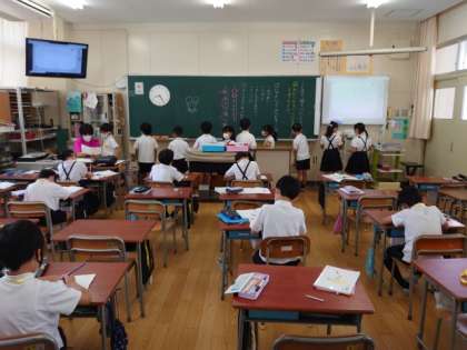保健委員会の人が作ってくれたメダルを使って、良い姿勢に取り組んでいます。