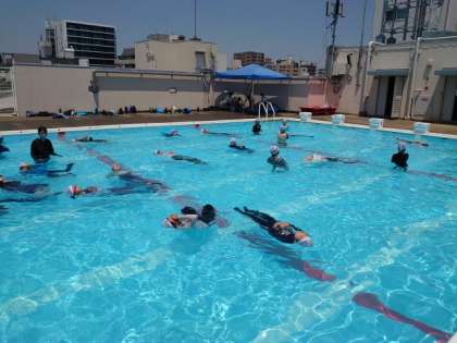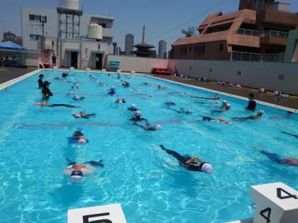 プールの換水に合わせて着衣泳をしました。
