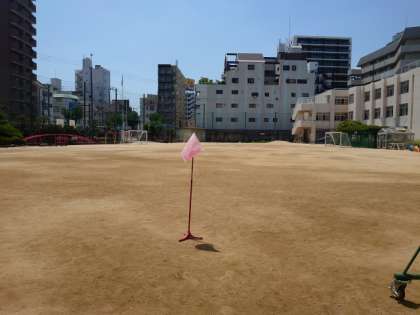 晴れているのに使えない運動場はちょっぴりさみしい感じもしますが、実際運動場に立ってみると、上からも下からも焼かれているような暑さを感じます。