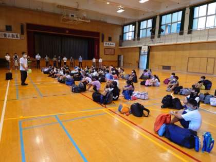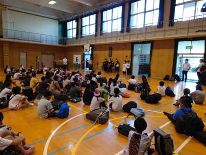 講堂で出発式をしました。