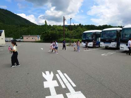 早くもバスに酔った人もいますが、これから正念場の山道です。