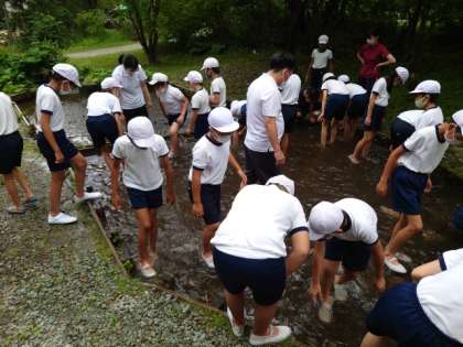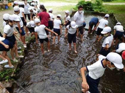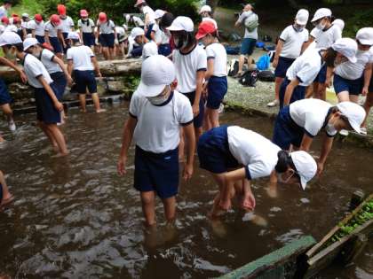 すばしっこい魚に苦戦する人もいれば、恐る恐る魚を触る人もいます。