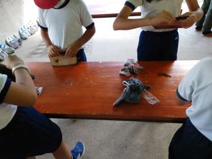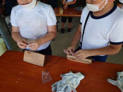 磨き上げたら金具をつけて、紐を通せば準備完了。