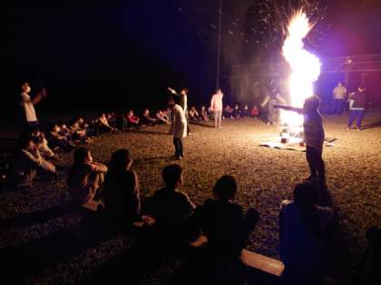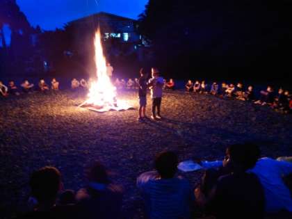 火の神たちによる点火のあと、たくさんの歌やゲームで楽しんでいます。