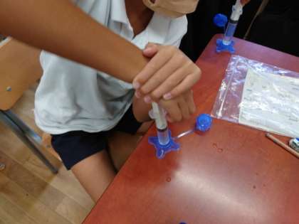 理科で、閉じ込めた空気に続いて、閉じ込めた水の変化について学習しました。